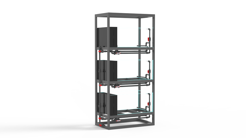 Each individual tank benefits from having its own separate filtration system which connects to a single drain pipe. The water flow can be controlled by using the 3-way valves to direct water either to the top surface, or beneath the plant trays. This unique feature provides a quick and effortless way to maintain each tank.