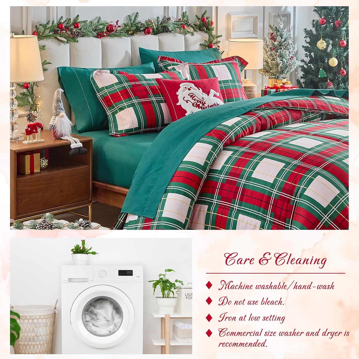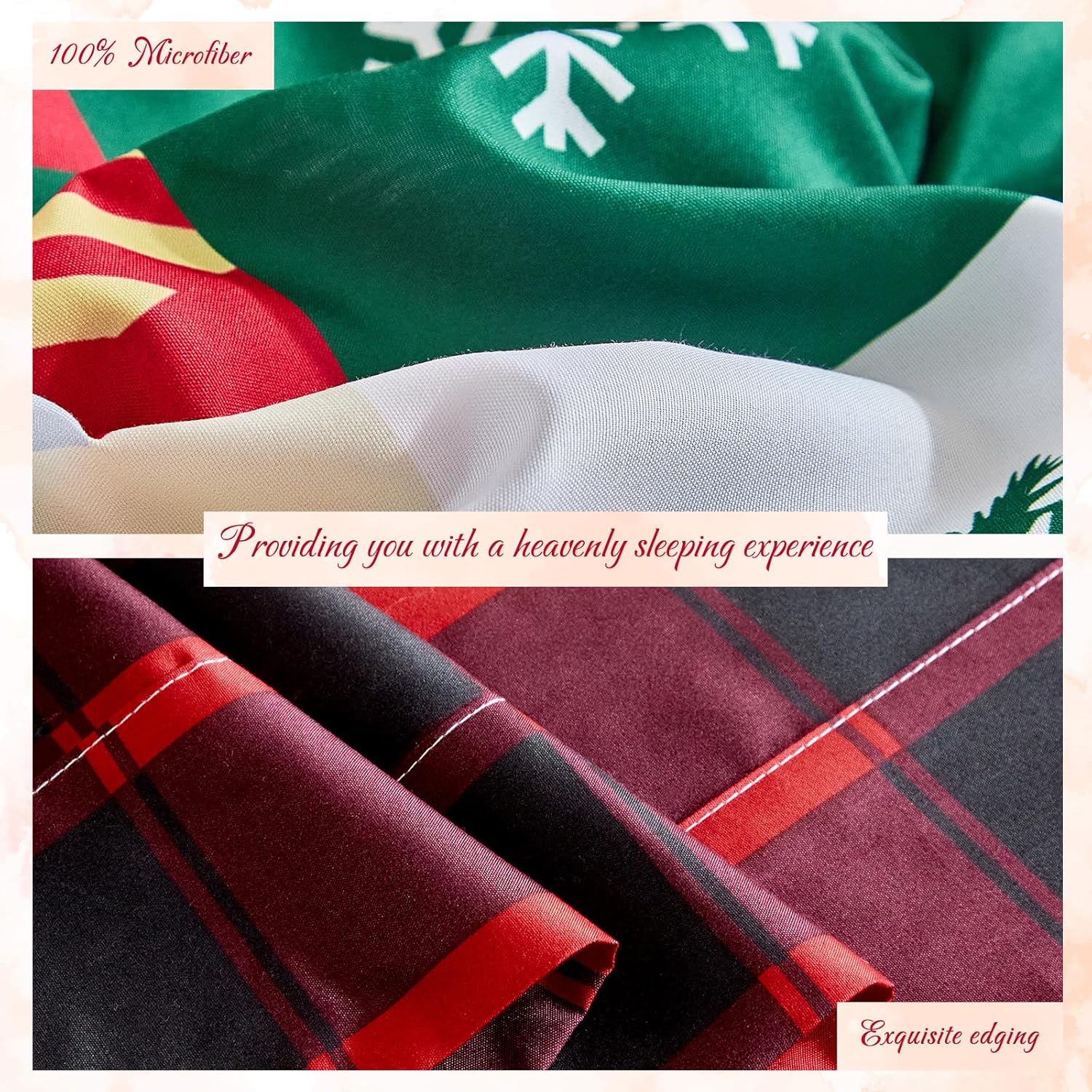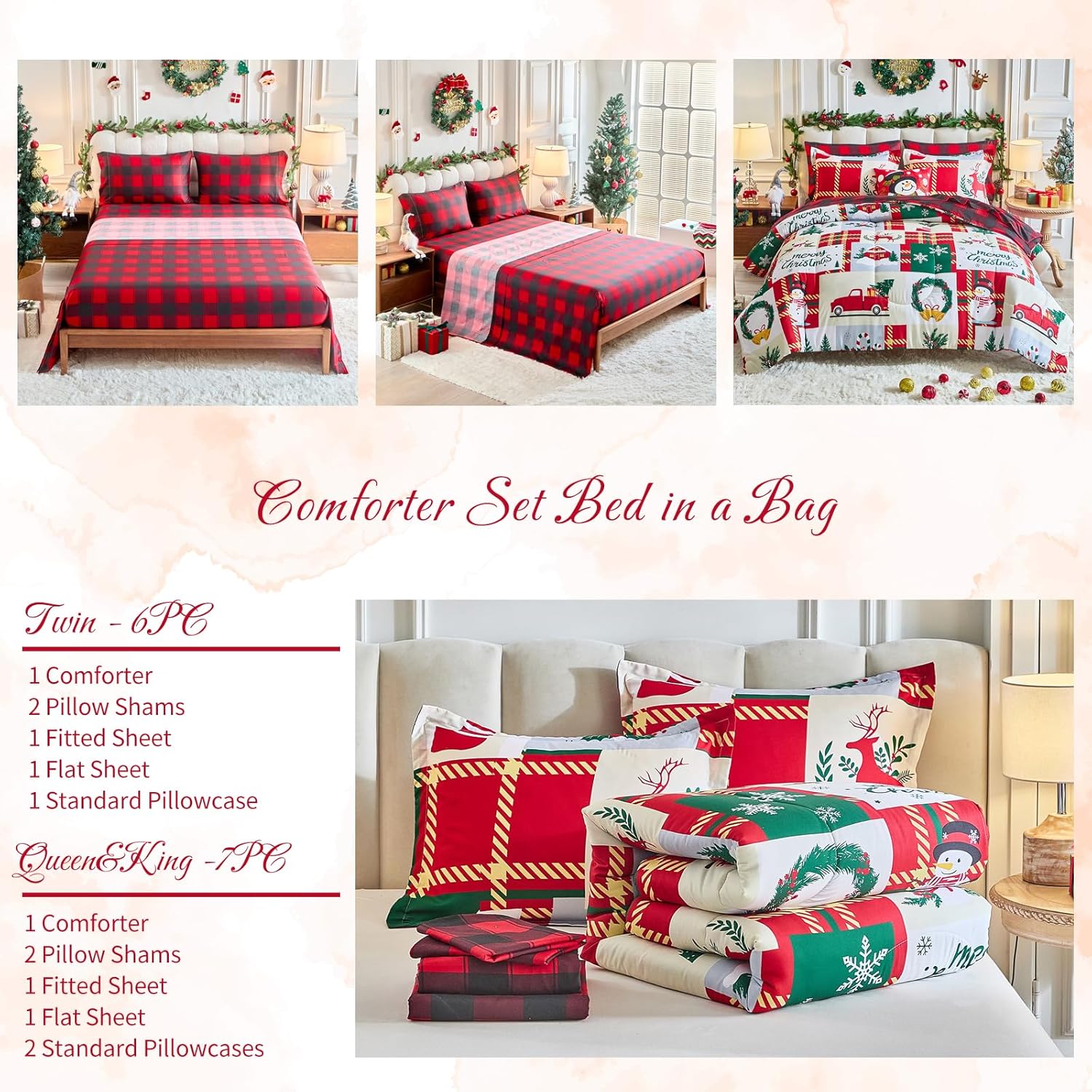 Christmas bed in a bag, soft microfiber made, ultra soft and breathable for all year used. Traditional Xmas holiday design, update your room decor well.